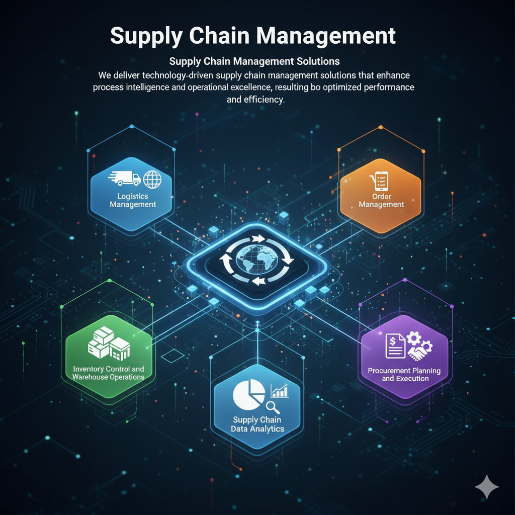 Supply Chain Management Solutions We deliver technology-driven supply chain management solutions that enhance process intelligence and operational excellence, resulting in optimized performance and efficiency.