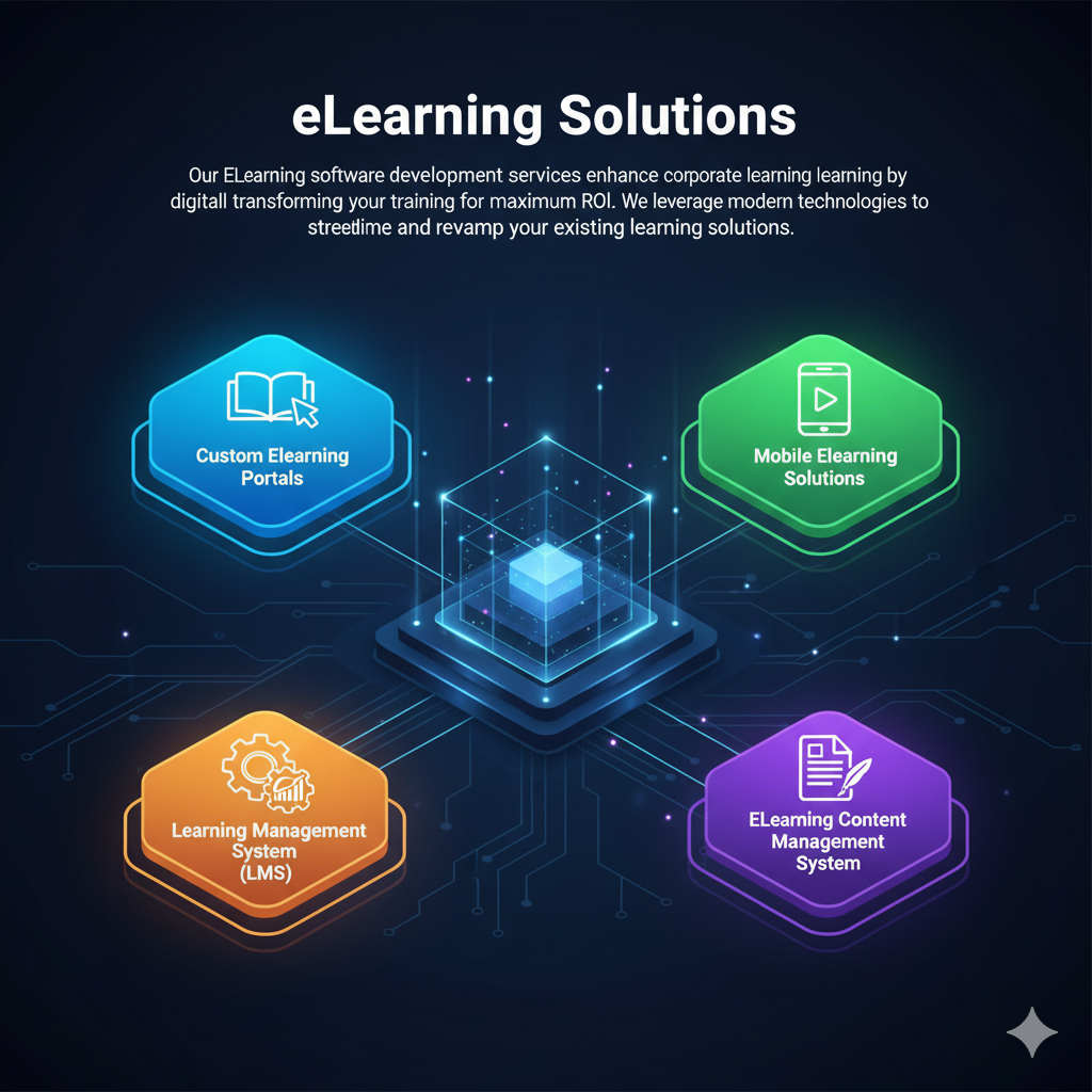 eLearning Solutions Our eLearning software development services enhance corporate learning by digitally transforming your training for maximum ROI. We leverage modern technologies to streamline and revamp your existing learning solutions.